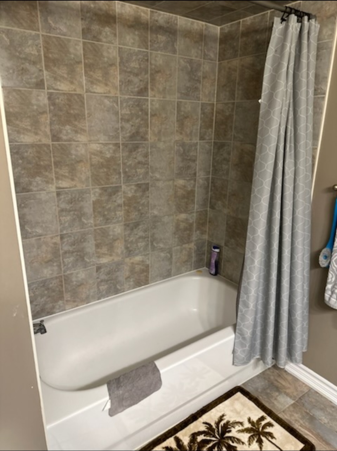 Old bathtub removed and replaced with a custom shower base. Professionally waterproofed and tiled shower walls ensure durability and elegance.